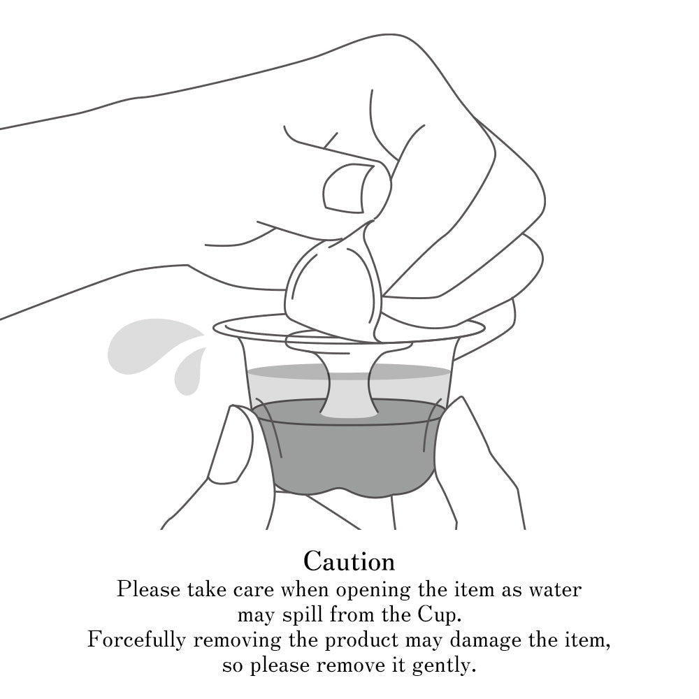 ① Gently peel off the Lid while holding the Cup in one hand. ※Please take care when opening the item as water may spill from the Cup.
