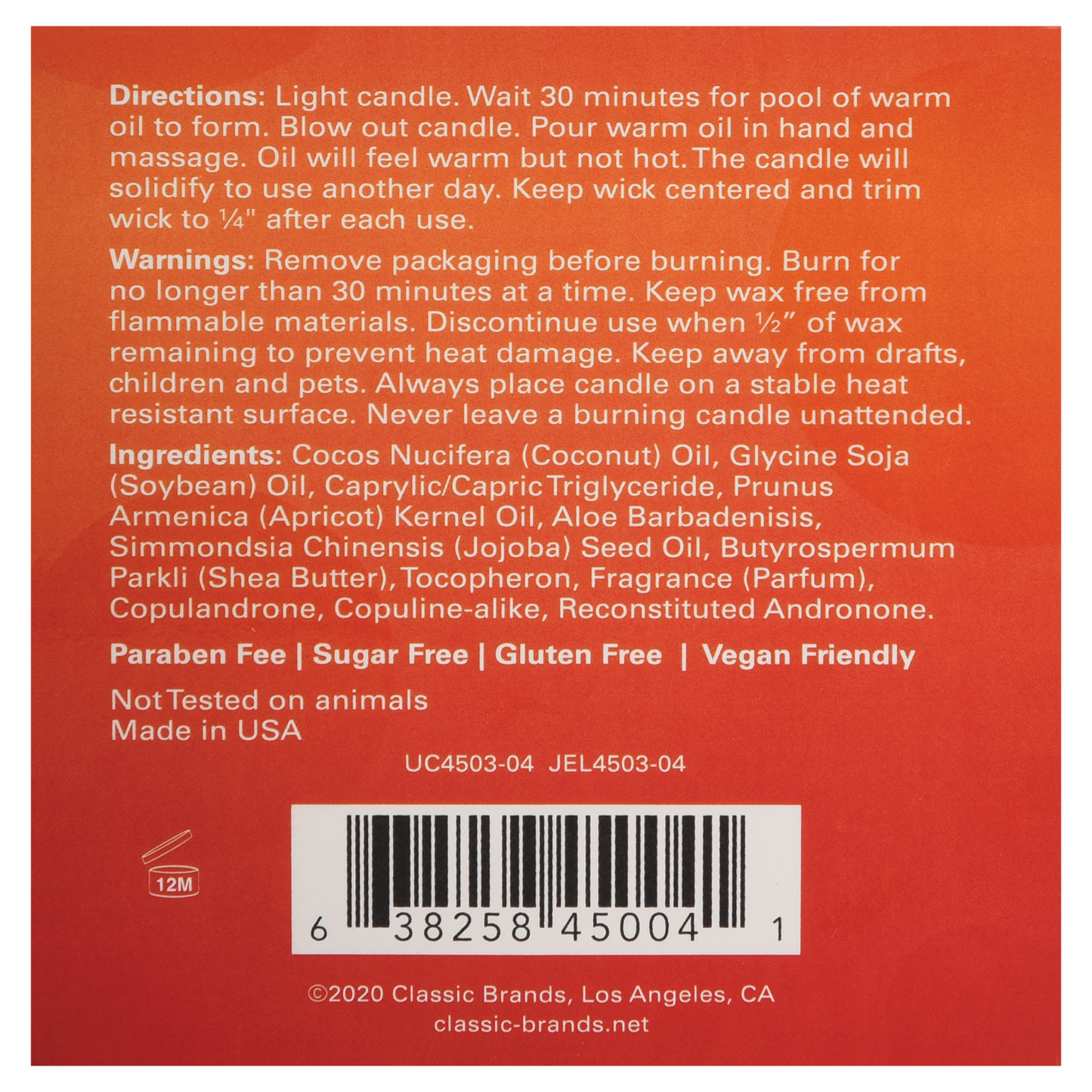 Set the mood you desire with this scented soy massage oil candle and let the decadent, fragrant oil take over.